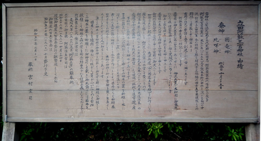 三宮様は神武天皇の第一皇子であらせられ 神武天皇が大和国に御東遷になつ後 健磐龍命と共に種々民政の上に力をつくされた方。